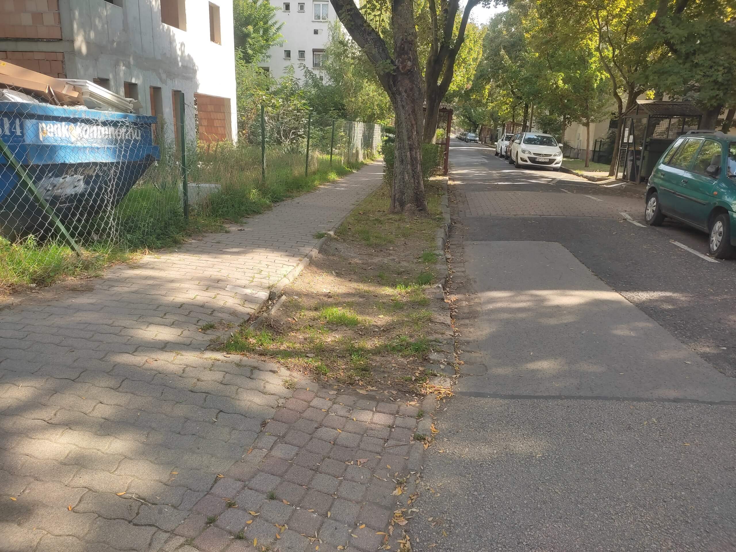 A gyalogos felületet részben felújítjuk, ahol szükséges javítjuk, megtartva a meglévő szélességét. Az épületek megközelítésére a zöldsávot megszakítva aszfalt, illetve betonkő járdát építünk. A vakok és gyengénlátók közlekedésének segítésére taktilis figyelmeztető kőburkolatot építünk a járda és az út találkozásokhoz.