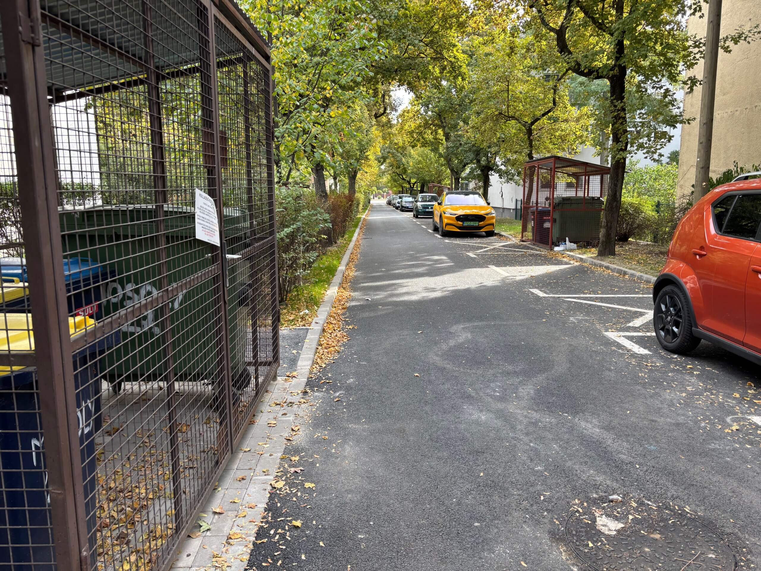 A felújítandó út egy 168,75 m hosszú egyenes útszakaszra, valamint az azt határoló zöld és járdafelületekre bontható. Az utat 12 cm-re kiemelt szegélysor választja el a szomszédos zöld felülettől, amelyek a kukatárolók környezetében azok eredeti szintjére kerül lesüllyesztésre. Törekszünk a meglévő geometria és magassági vonalvezetés megtartására az út jelenlegi állapotához hasonlóan.