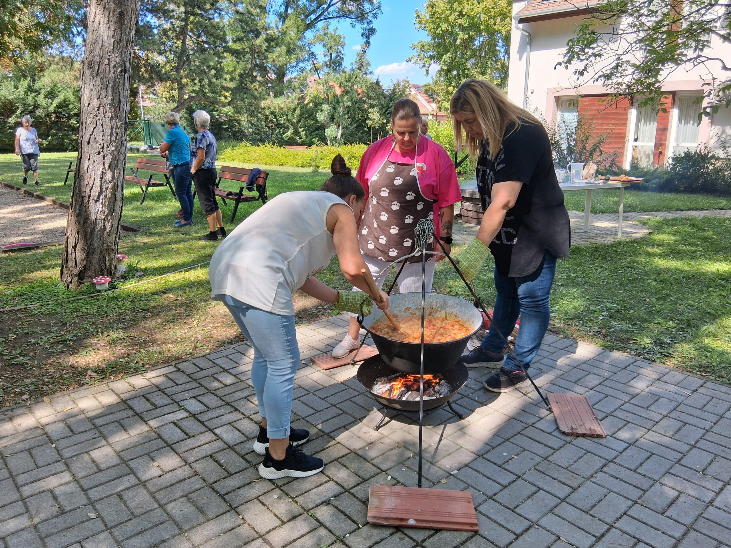 A Derűs Szívek és a Derűs Alkony Idősek Klubjainak közös ünnepségén igazi meglepetéssel készültek a szervezők: a szép számmal érkező klubtagokat terített asztal, és két hatalmas, nyílt tűzön rotyogó bogrács várta, amelyben parádés lecsó készült az új kenyérrel történő találkozásra… Pothorszki Zita, a Derűs Szívek Idősek Klubjának vezetője ünnepi beszédében felidézte az államalapító Szent István király alakját, emlékeztetett az államalapítás jelentőségére, majd szólt az új kenyérhez fűződő népi hagyományokról, szokásokról is.