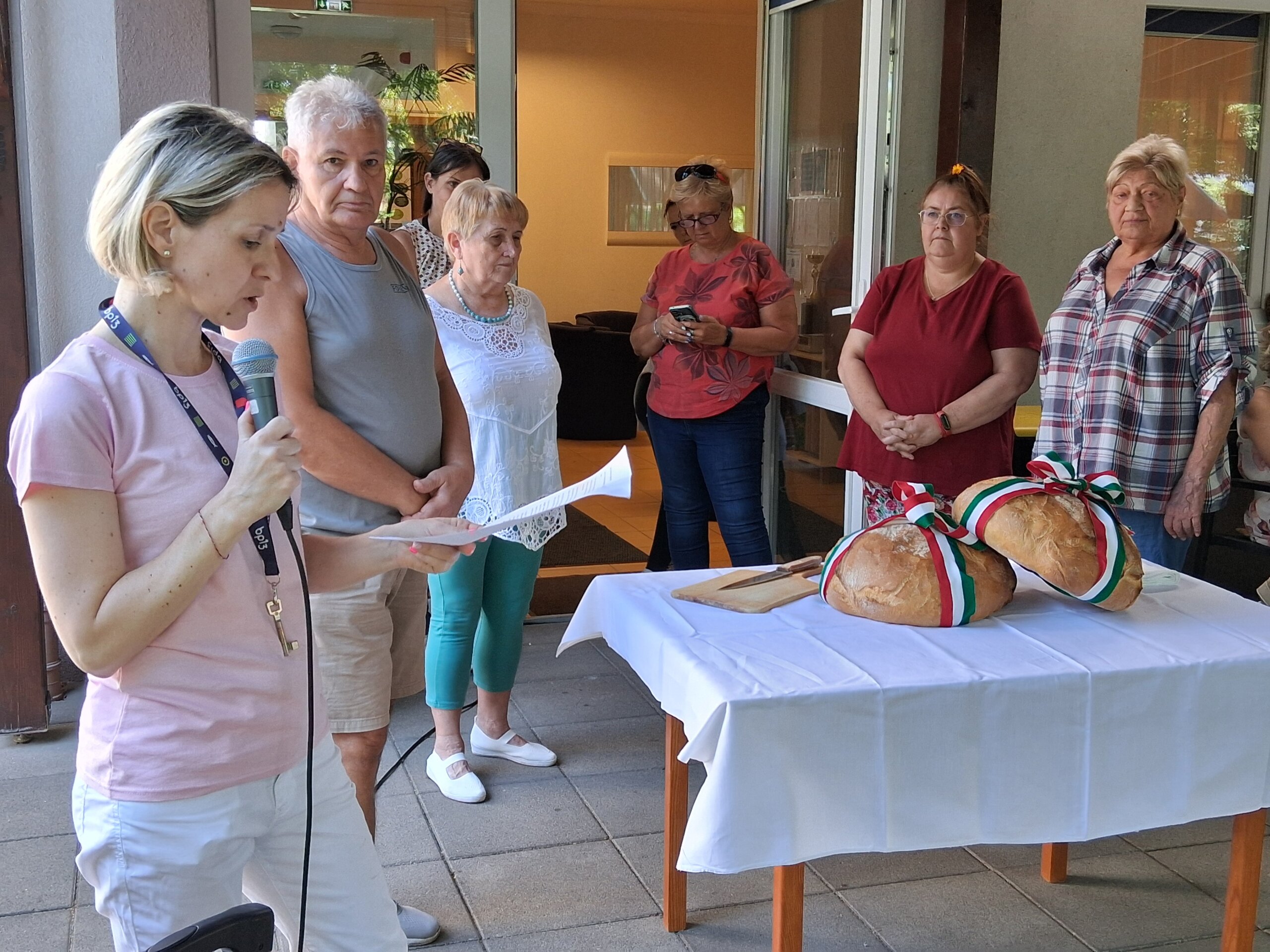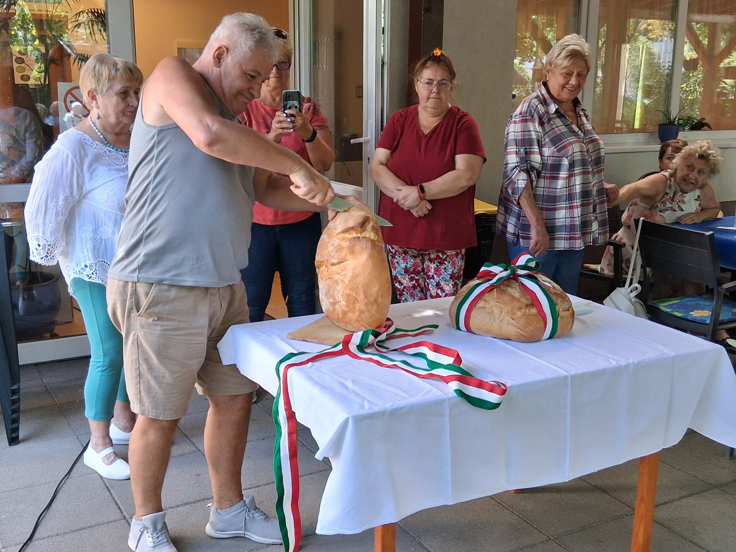 Az idősek klubhálózatának ünnepi eseménysorozata augusztus 18-án a Klub Kávézó Idősek Klubja Szent István körút 8. szám alatti intézményében folytatódott, ahol Sívó Katalin klubvezető-helyettes ünnepi gondolatainak elhangzását követően Gál Beatrix idősgondozó Petőfi Sándor: Fekete Kenyér, Tóhelyi Tímea idősgondozó Túrmezei Erzsébet: Megszegett kenyér, majd Sívó Katalin Bódás János: Új kenyér című költeményét adták elő.